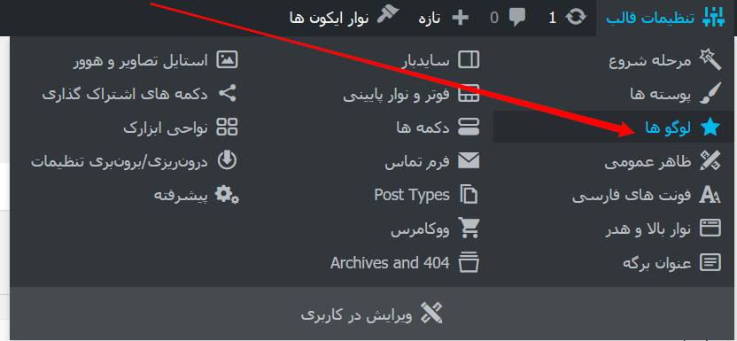 ابتدا در تنظیمات قالب به بخش لوگو ها می رویم :